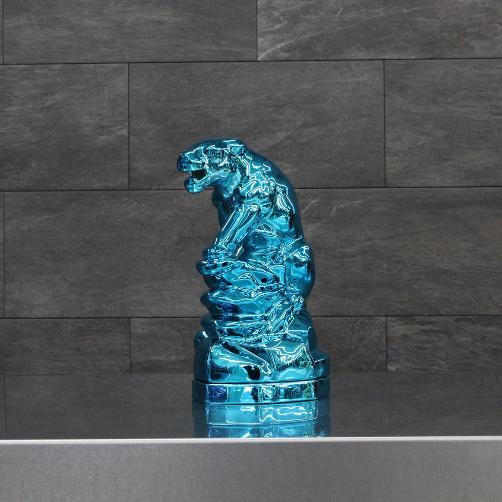 帶有美洲虎圖案的香爐。華麗的金屬系列有四種顏色可供選擇:銀色、金色、紅寶石色和祖母綠色。