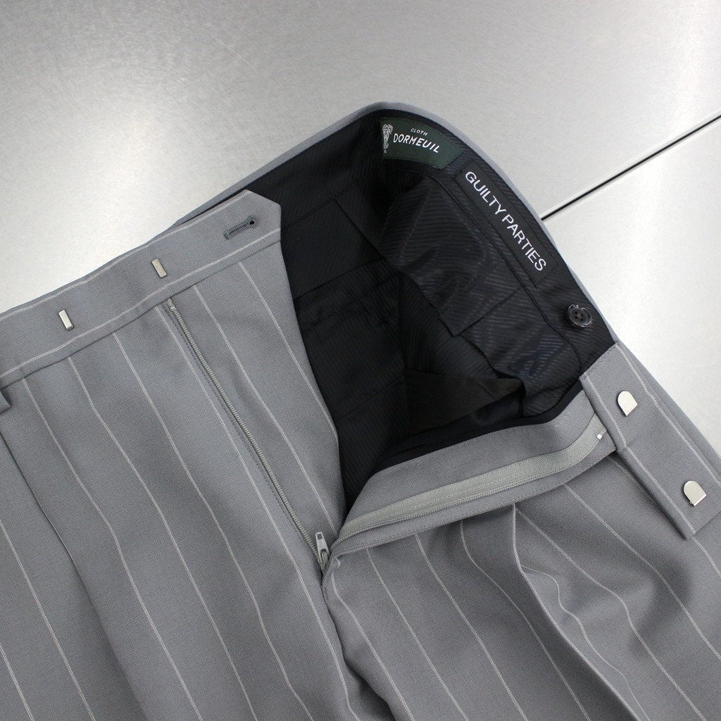 布料特色 - 涼爽的灰色細條紋布料。四季皆可穿著。