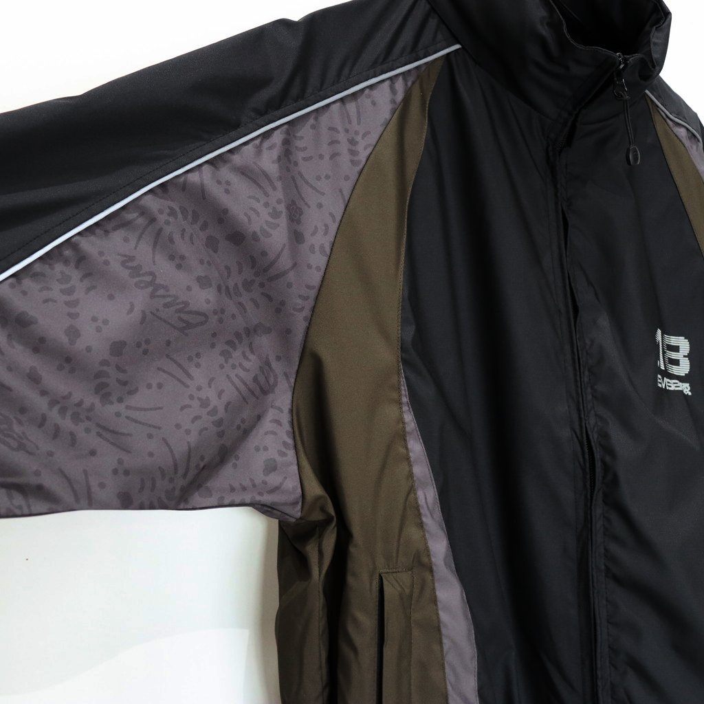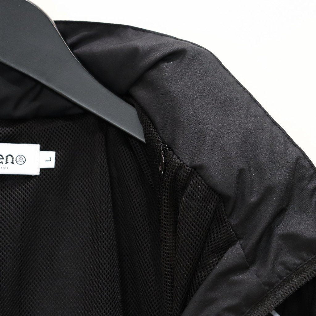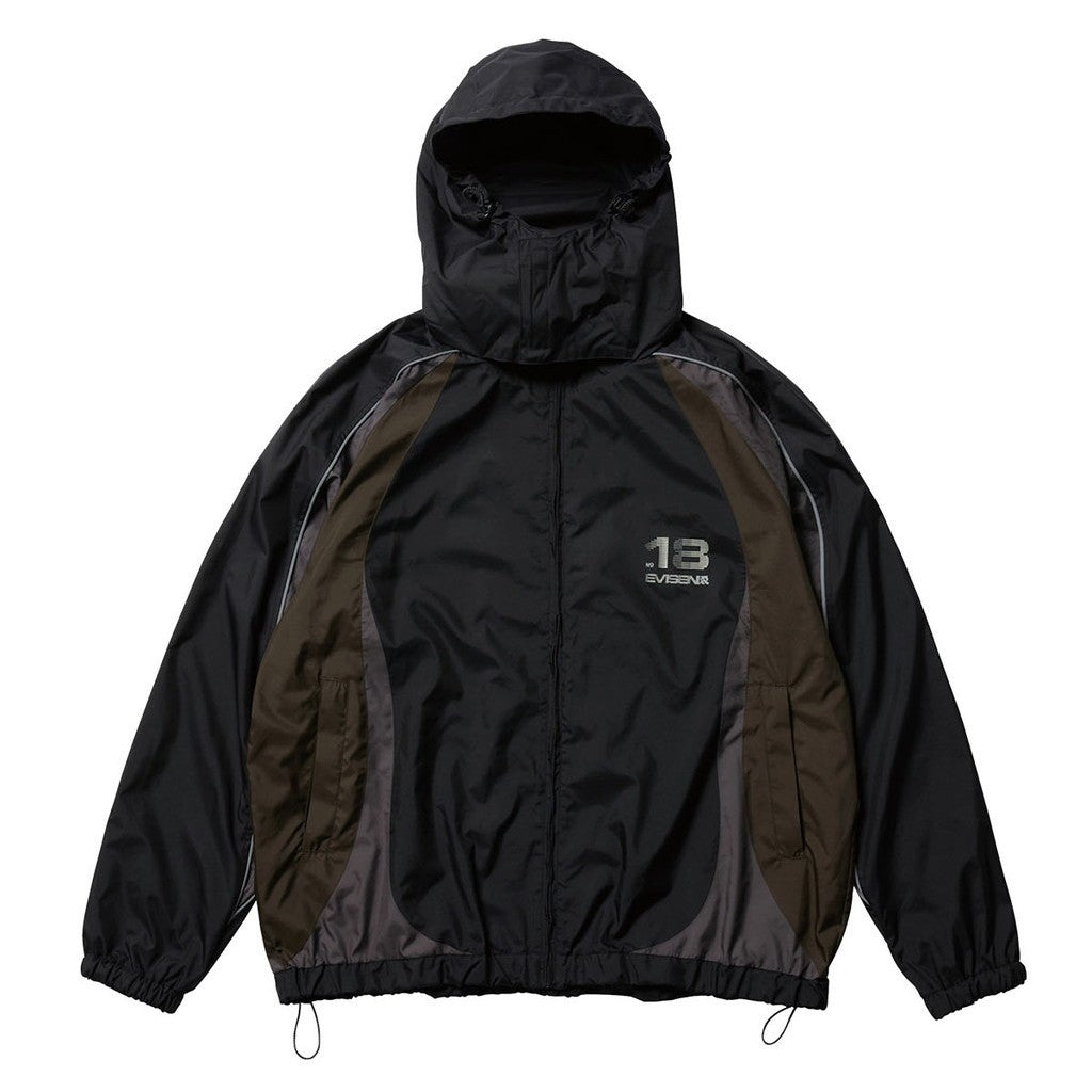 左臂有 Evisen 矽膠貼片,下方有反光抽繩,可調整衣身輪廓。