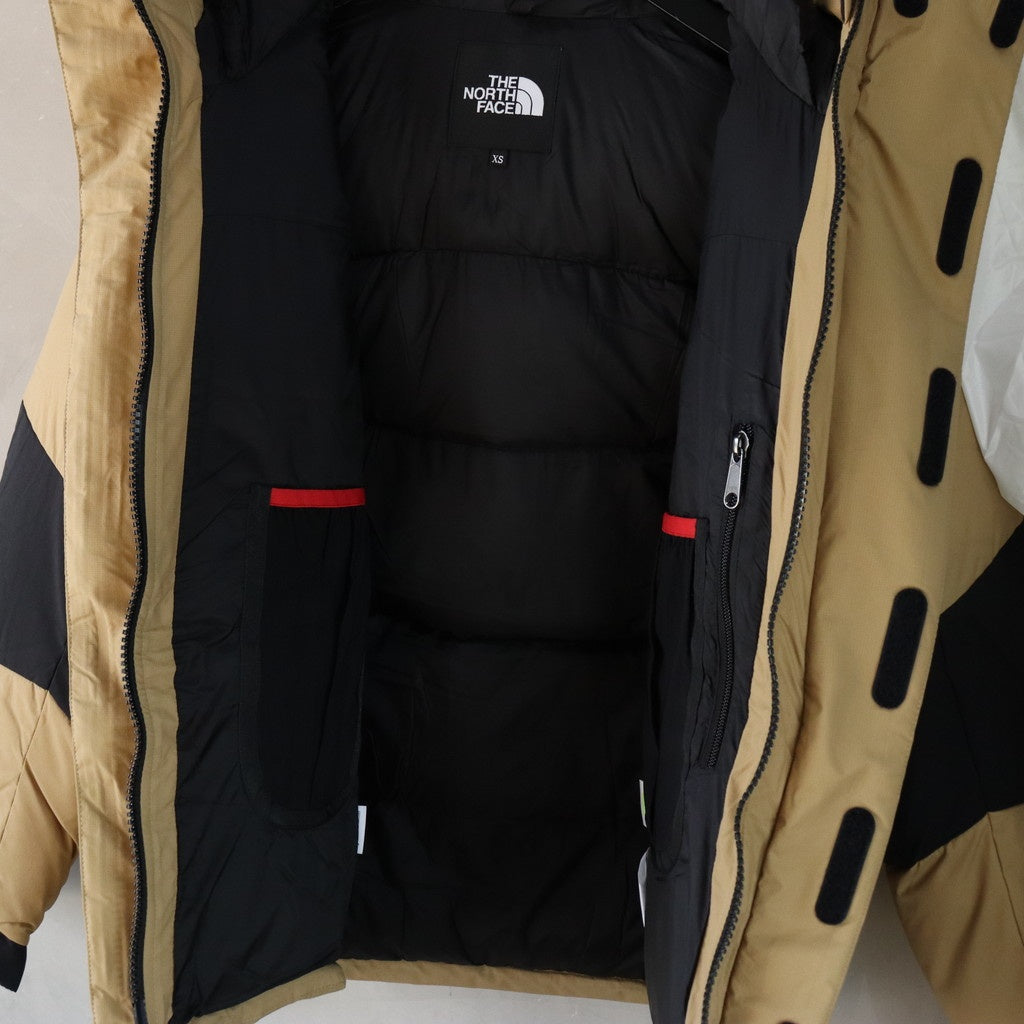 雙層前襟/兩個內置水壺袋/單手可調式風帽/防水拉鍊胸袋/羽絨內領