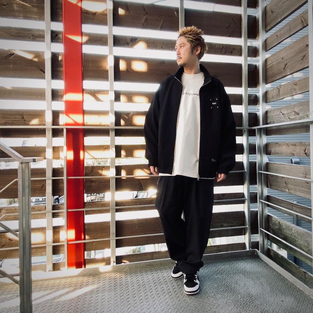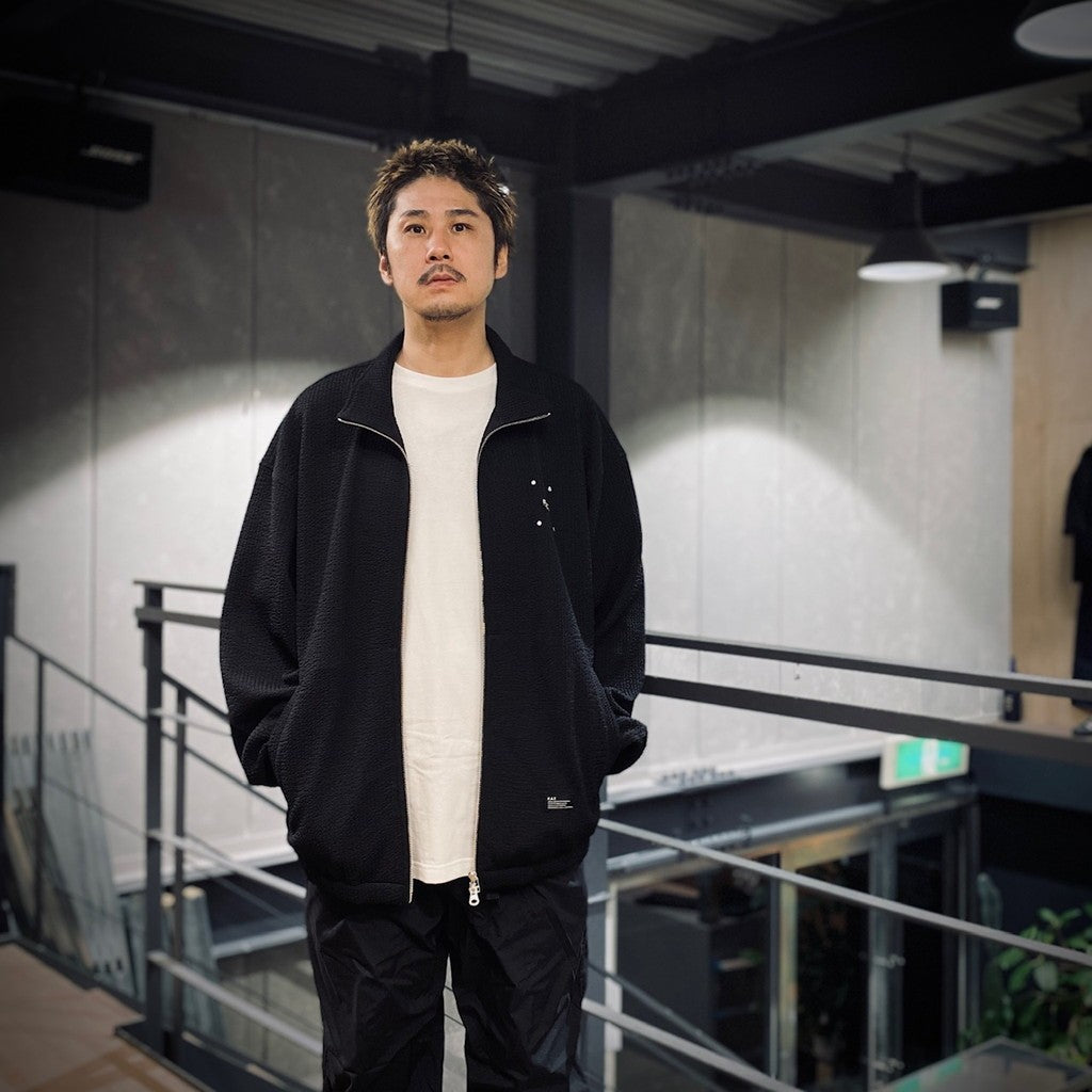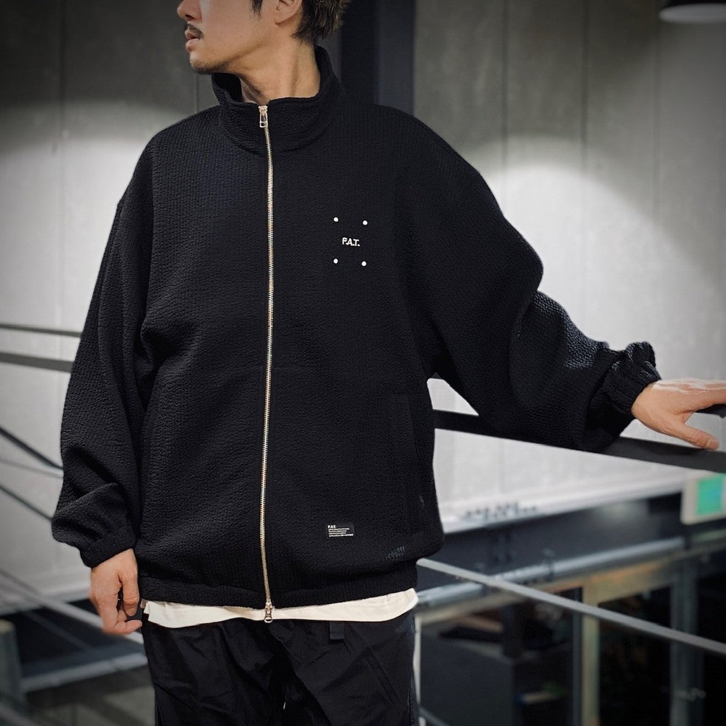 這款運動夾克採用提花針織面料製成,具有獨特而醒目的表面紋理。
