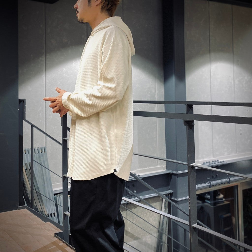 一款採用華夫格布料製成的保暖派克大衣,可內穿或外穿。