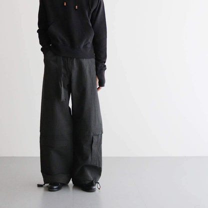 腰部 - 部分皺褶 + 抽繩 + 皮帶環。