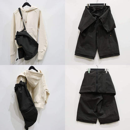 包包 - 將膝蓋下方的各部分用拉鍊連接起來,並將繫在腰帶環上的繩子係緊,即可製成一個束腰包式的包袋。