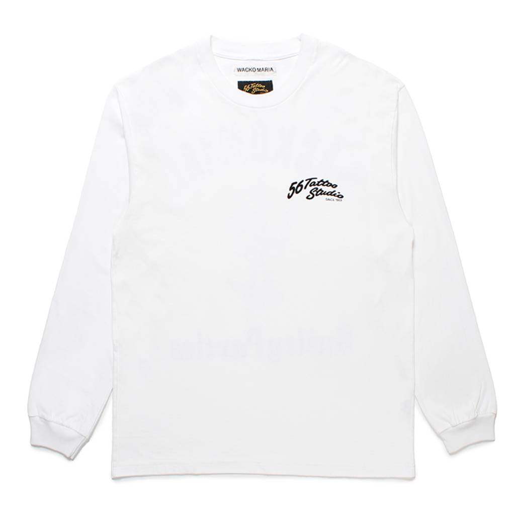 56 紋身工作室 | 水洗重磅圓領長袖T卹 #白色 [56TS-WM-LT03]