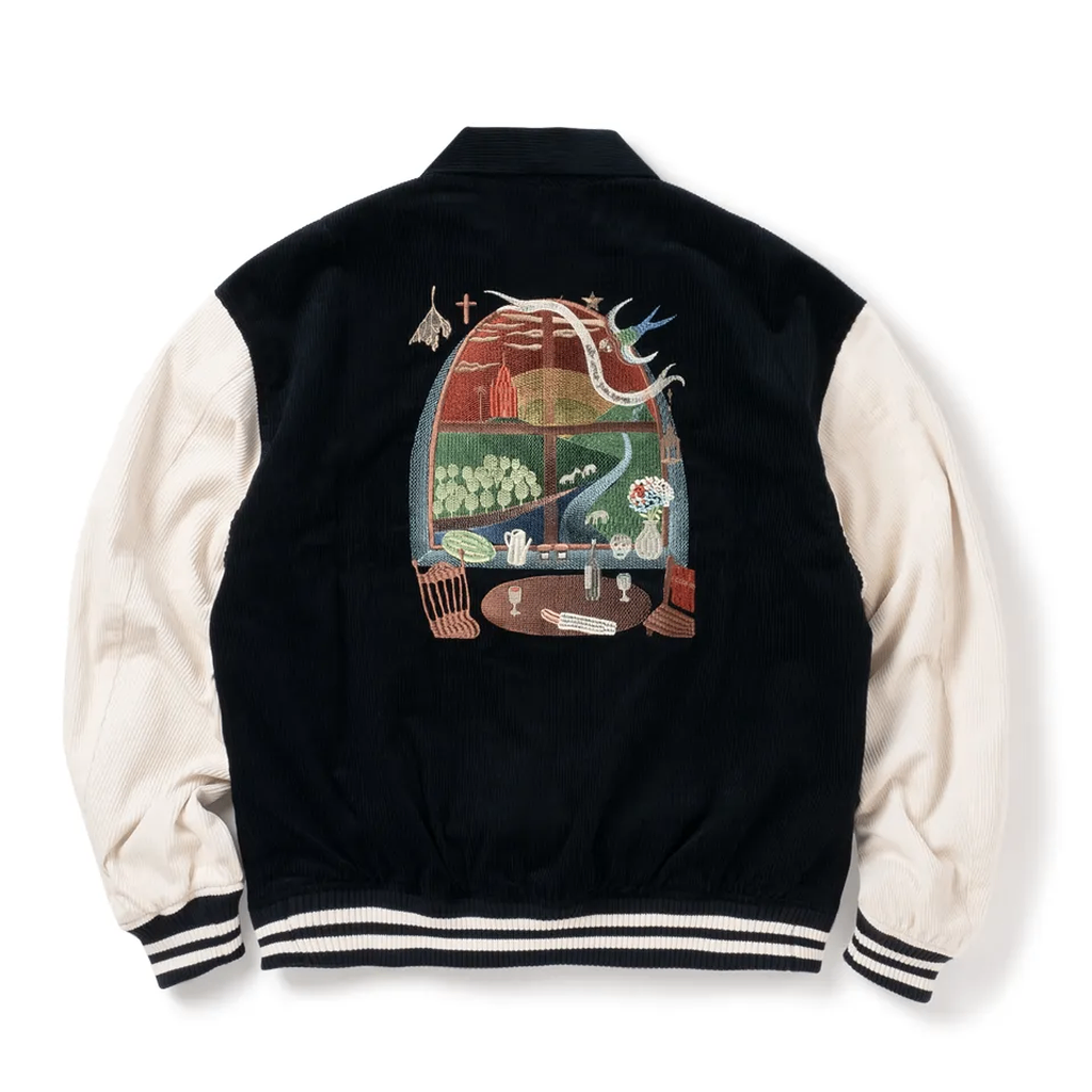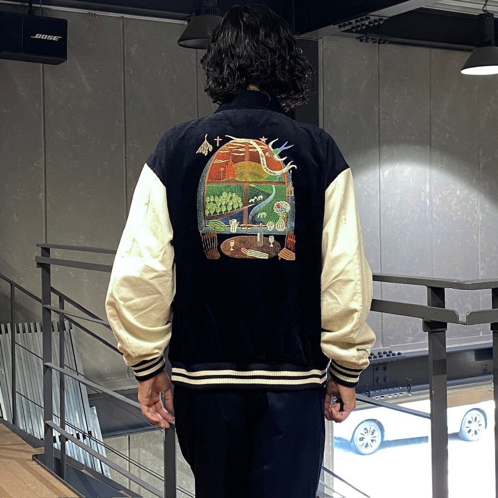 一件棒球夾克,背面繡有坂本結衣的藝術作品。