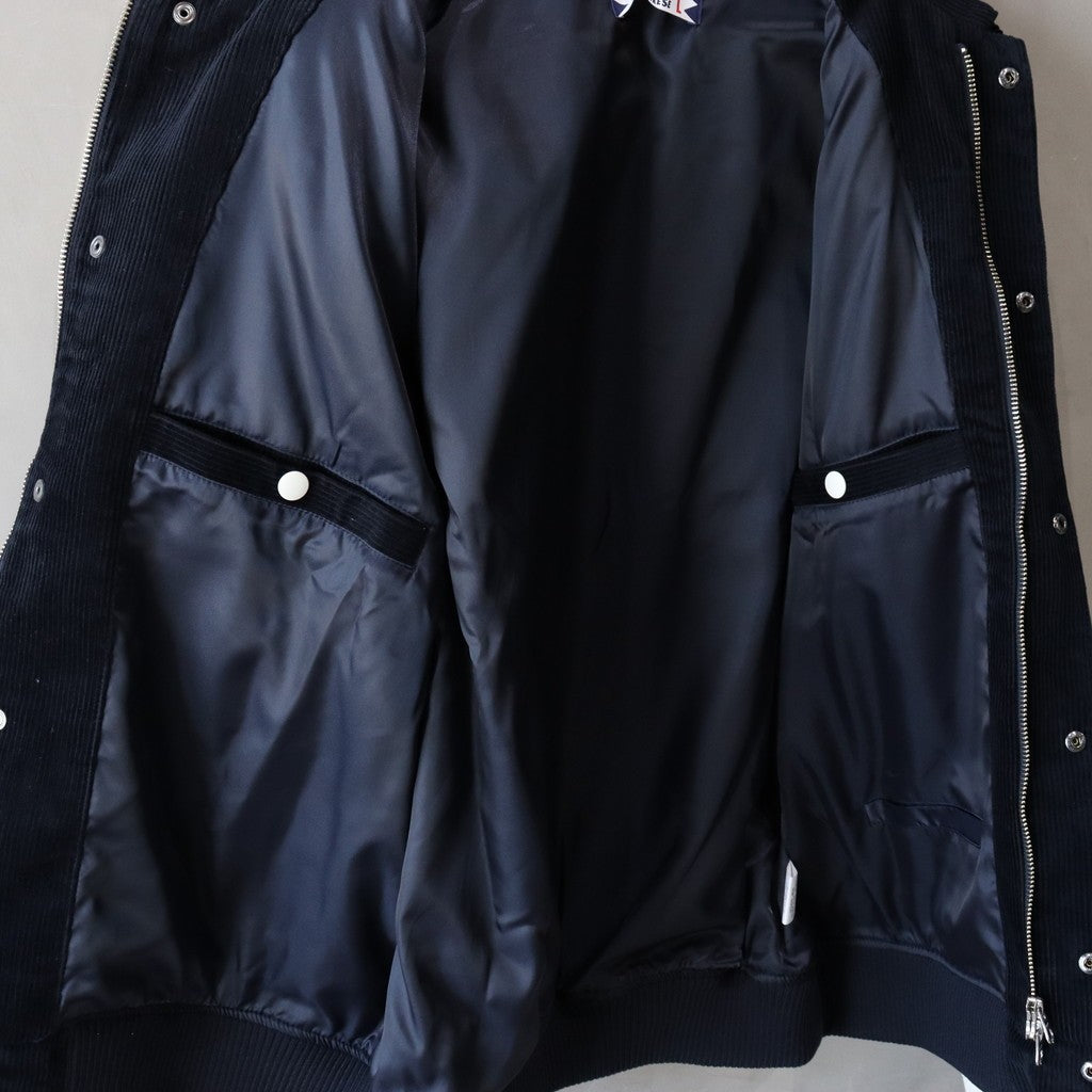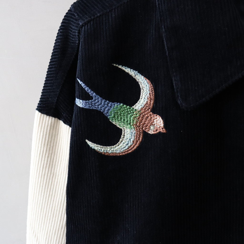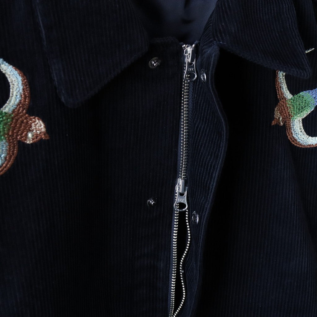 布料 - 燈芯絨布料,含裡料;領口 - 翻領;前襟 - 雙拉鍊+連結;口袋 - 2個前口袋,2個內袋;袖口、下擺 - 羅紋設計;前後片刺繡