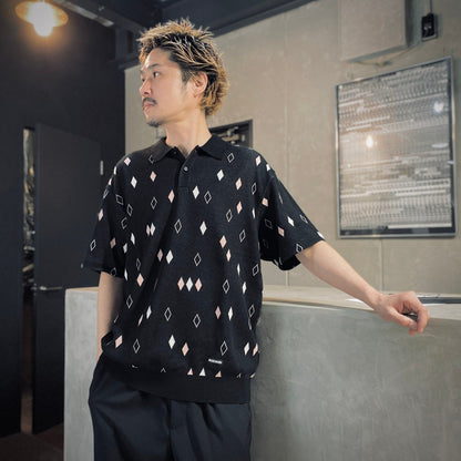 菱形針織POLO衫 #黑色 [25SS-WMK-KN21]
