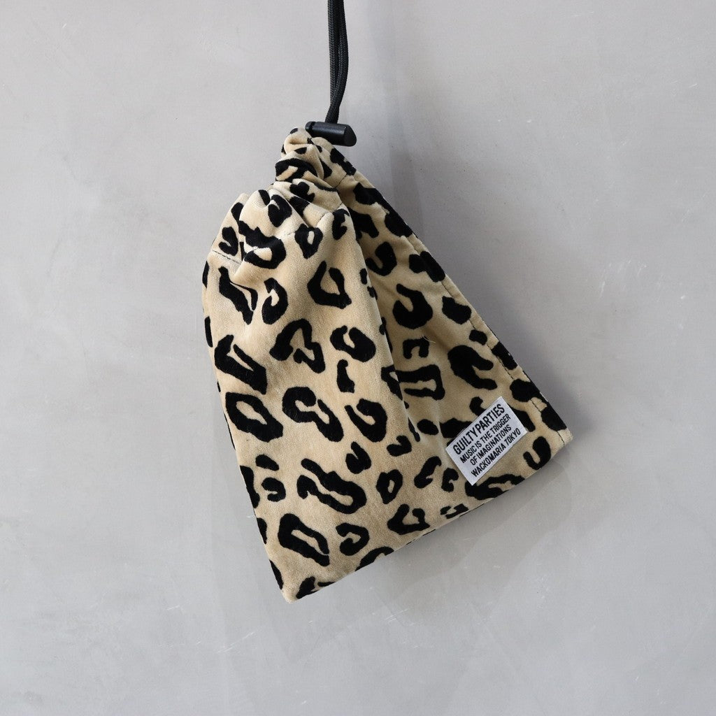 類型 - 抽繩肩包 品牌標籤 材質 - 天鵝絨布料 設計 - 豹紋印花繩扣