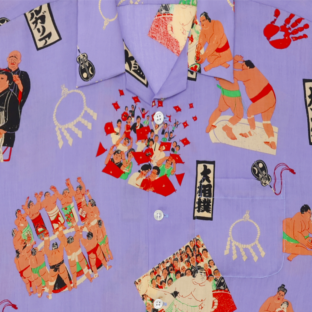 這款夏威夷襯衫以「相撲」為主題,印滿了酷炫的相撲相關場景插圖。