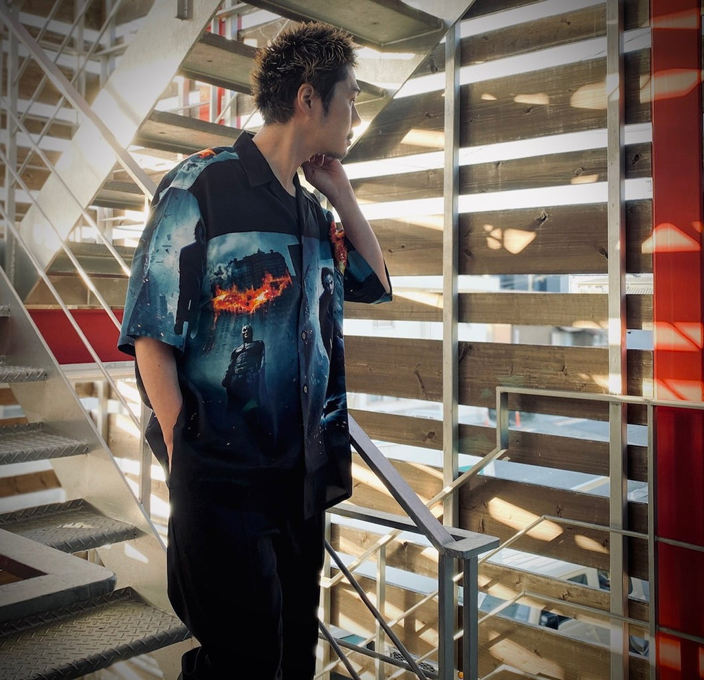 開領襯衫布料 - 薄款人造絲布料領子,寬鬆版型 - 開領口袋 - 正面一個木質紐帶口袋,圖案對齊,短袖