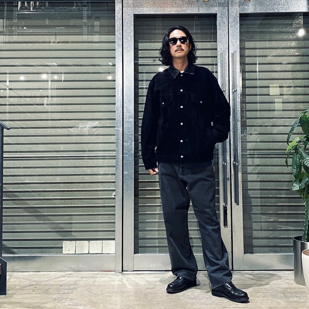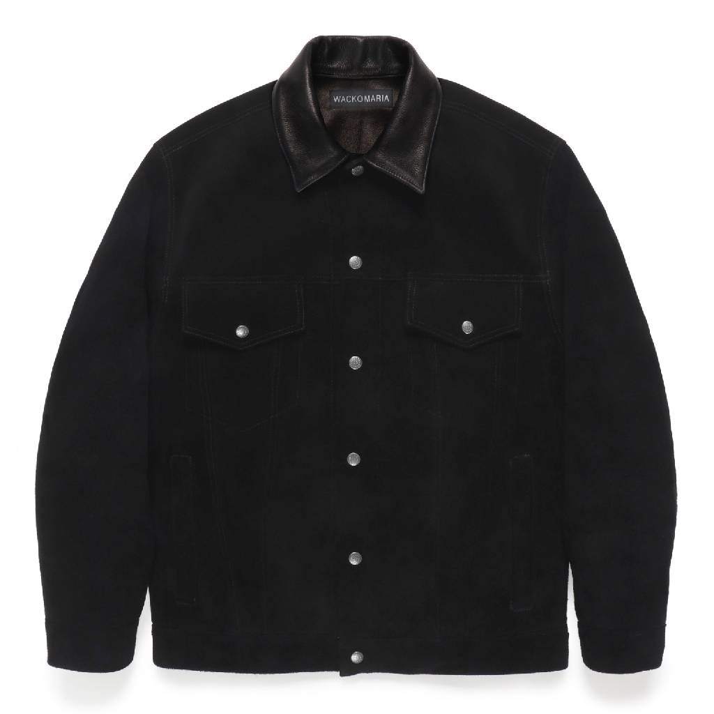 材質 - 衣身採用牛皮(絨面革),僅衣領為真皮材質。襯裡 - 無。口袋 - 正面有兩個原廠羈扣。衣領鉤(鏈條)。